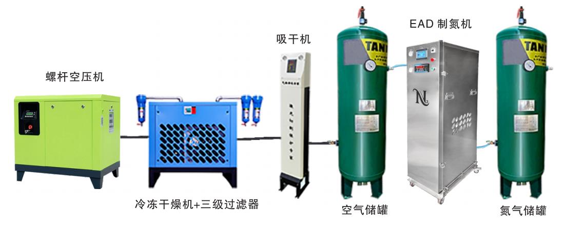 该型号氮气纯度达99.99%,通过对空气进行深度除水,冷干机+无热再生干燥机常压露点可达-50℃左右,压力露点达-30℃左右。是激光焊接/激光切割/3D熔覆/3D打印等行业专用制氮机。采用高精度测氮仪,具有报警功能,自动停机功能。